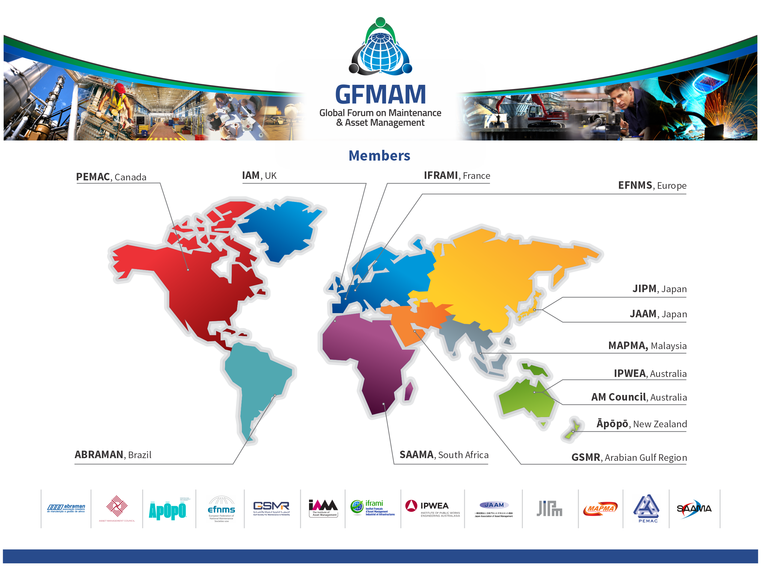 The Global Forum on Maintenance & Asset Management (GFMAM) is a non profit organisation founded to promote and develop the maintenance & asset management professions by collaborating on knowledge, standards and practices.